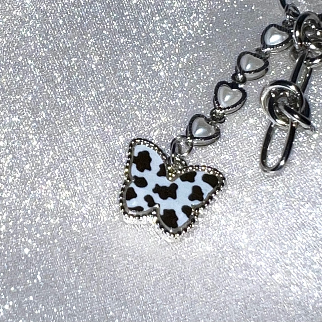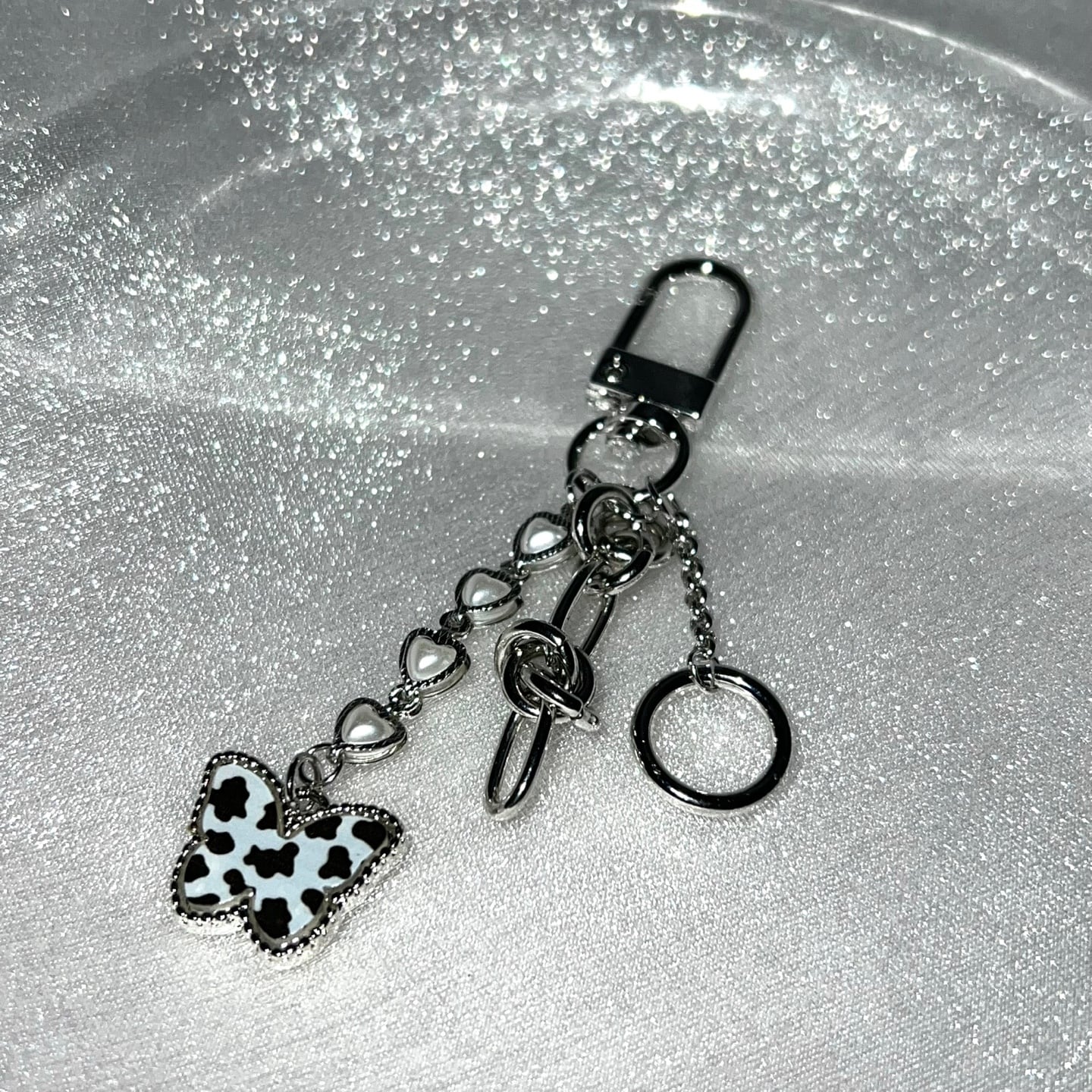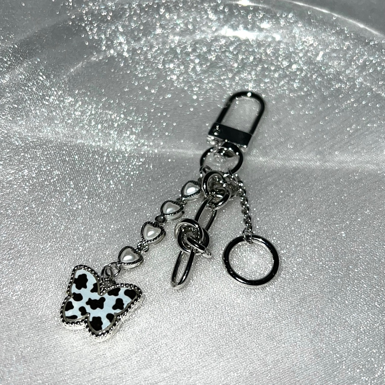 Cow butterfly chain ring keyring